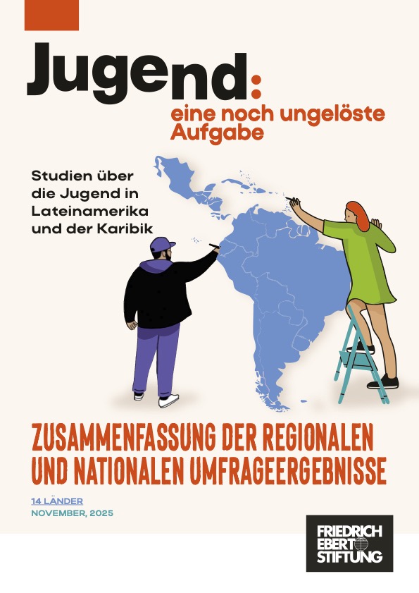 Laden Sie die Zusammenfassung der regionalen und nationalen Ergebnisse von Jugend: eine noch ungelöste Aufgabe, verfügbar auf Spanisch, Englisch, Portugiesisch und Deutsch. Dieses Dokument bündelt die wichtigsten Ergebnisse des Regionalberichts sowie der 14 teilnehmenden Länder und bietet eine vergleichende Perspektive auf die Jugend in Lateinamerika und der Karibik. Eine zentrale Grundlage, um ihre Lebensbedingungen, Wahrnehmungen und Formen politischer Beteiligung zu verstehen.